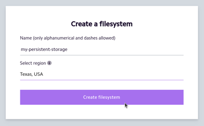 2. Enter a name and select a region for your file system. Then click Create filesystem.