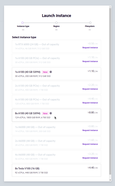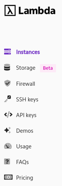 The dashboard makes it easy to get started using Lambda GPU Cloud.