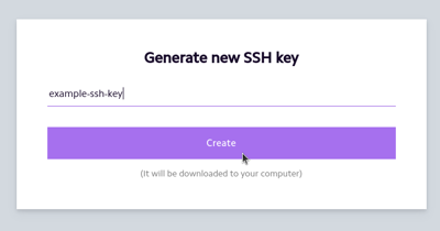 1. Instead of pasting your public SSH key as instructed, above, click Generate a new SSH key. Type in a name for your key, then click Create.